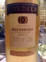 I flera år har jag tänkt pröva denna kombination men glömt av det. Nu var det dags. Det blev en enklare Sauternes från 2002 som inte var allt för söt. Kombinationen var faktiskt kanon, kan rekommenderas.