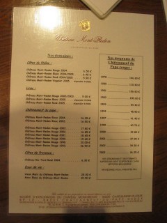 Precis som vid förra provningen hos Linda och Mattias så var det suveräna Mont-Redon från Châteauneuf-du-Pape som nästan alla hade som favorit. Ett suveränt vin som precis har bytt årgång på bolaget till 2005. På förra provningen drack vi årgång 2004. Årgång 2004 anses bra men 2005 är ett toppår i södra Rhône.